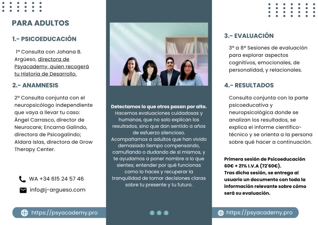 Los servicios que ofrecemos en Psyacademy son altamente especializados. Trabajamos online, así que puedes consultar desde cualquier parte del mundo. Si quieres ponerte en contacto puedes hacerlo a través de info@j-argueso.com o enviando un WA o Telegram al +34615245746. Consulta sin compromiso.
